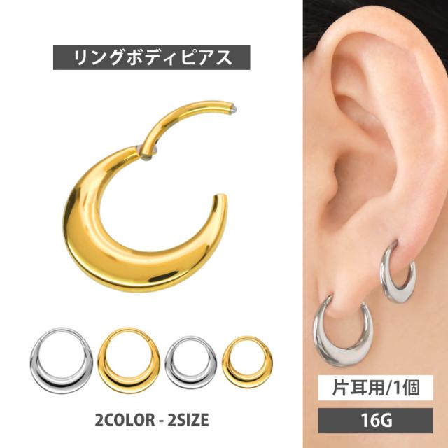 【ワンタッチで装着】ボディピアス ムーンフォルムセグメントリング 16G 中折れ 軟骨ピアス ヘリックス【30日間お試し期間あり/返品交換保証】