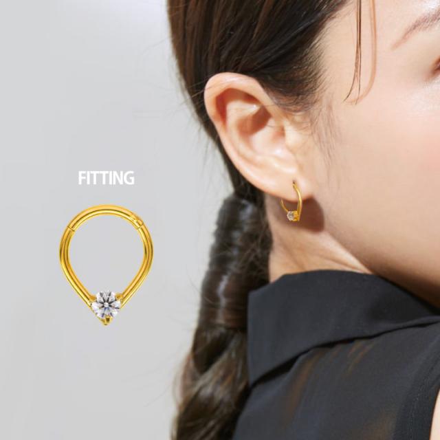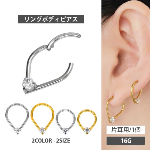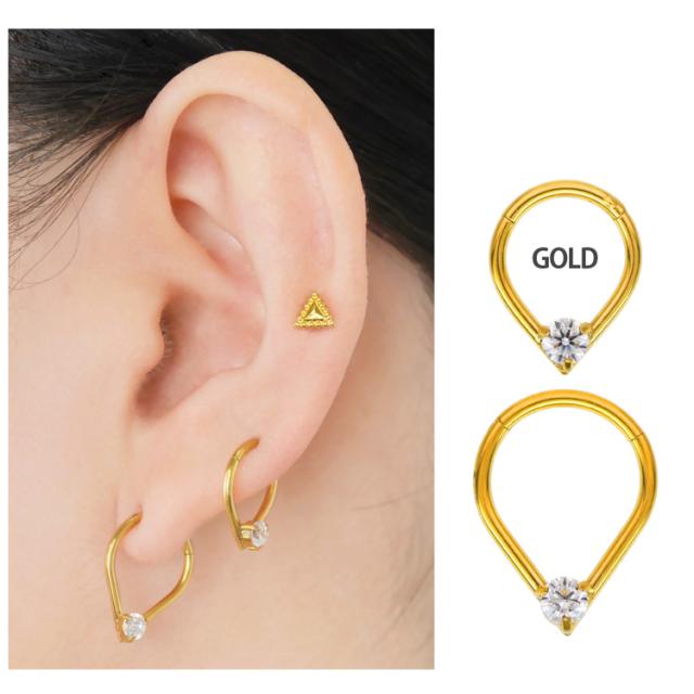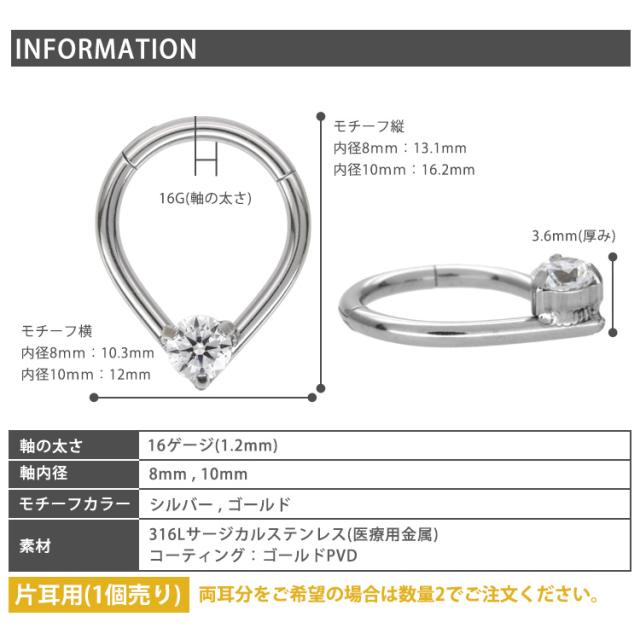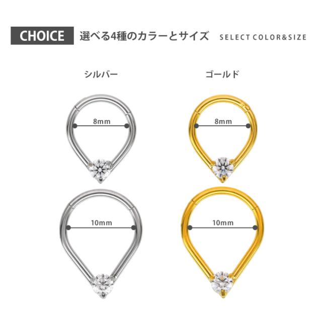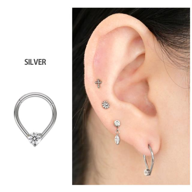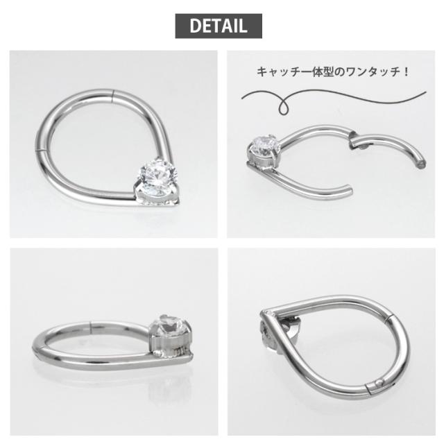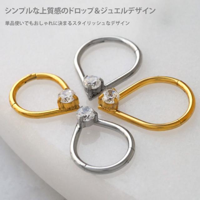【ワンタッチで装着】ボディピアス 立爪ジュエルティアドロップセグメントリング 16G 中折れ 軟骨ピアス ヘリックス【30日間お試し期間あり/返品交換保証】