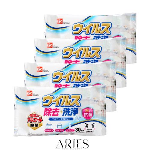 ◆商品名:レック(LEC) 激落ちくん ウイルス除去 除菌 洗浄 ウェットシート 30枚入 (4個パック) /24時間 抗菌/アルコール・アルカリ電解水・グレー