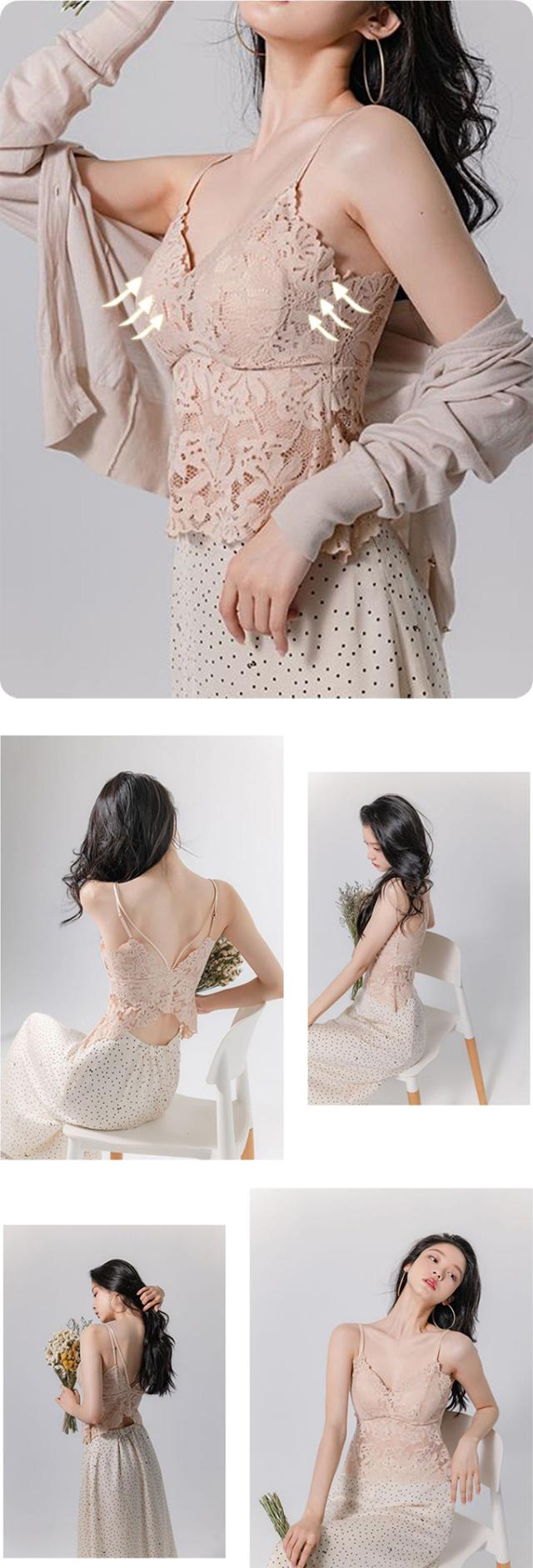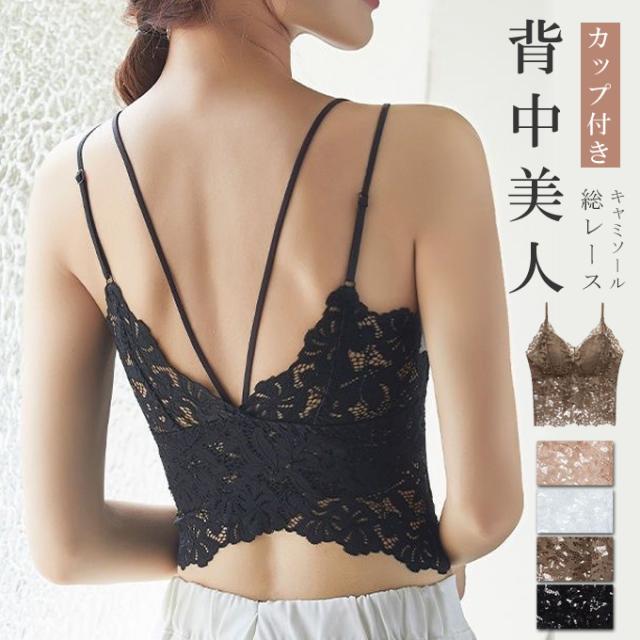 半額キャンペーン中、1089円背中美人 総レースキャミソール カップ付き 背中見せ インナーキャミ 美背美胸 インナーウェア セクシー 大人可愛い下着 締め付け感なし レディース