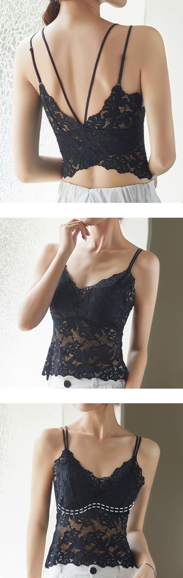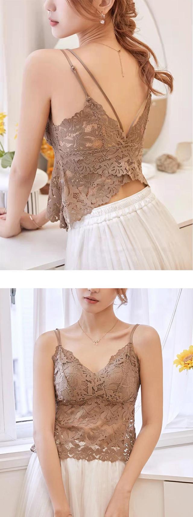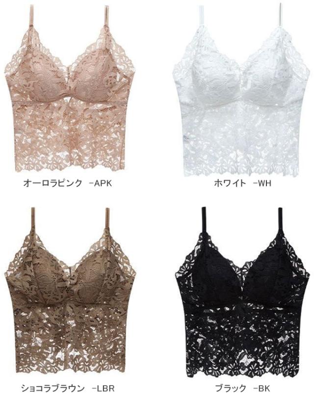 透け感のある総レースデザインがフェミニンな印象のカップ付きキャミソール