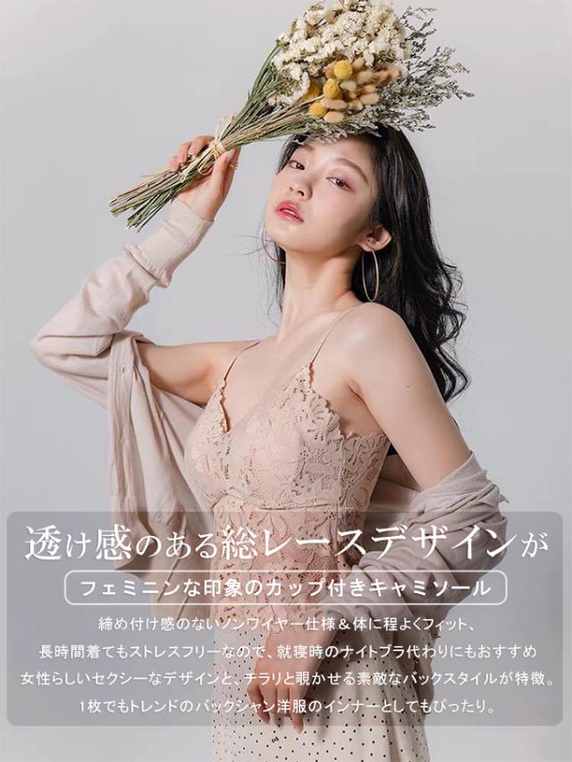 透け感のある総レースデザインがフェミニンな印象のカップ付きキャミソール 締め付け感のないノンワイヤー仕様&体に程よくフィット、 長時間着てもストレスフリーなので、就寝時のナイトブラ代わりにもおすすめ 女性らしいセクシーなデザインと、チラリと覗かせる素敵なバックスタイルが特徴。 1枚でもトレンドのバックシャン洋服のインナーとしてもぴったり。 ※モニター環境により多少色合いが異なりますので、予めご了承くださいませ |