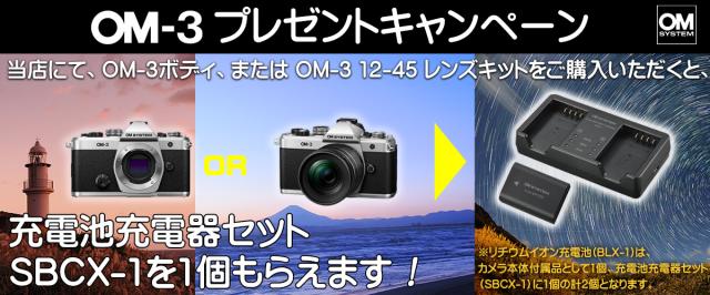 【SBCX-1 充電池充電器セット1個プレゼント中!】 OM-3ホティズドラップ OM SYSTEM OM-3 ボディ と シンプルに使えるカメラリストストラップのお買い得セット!
