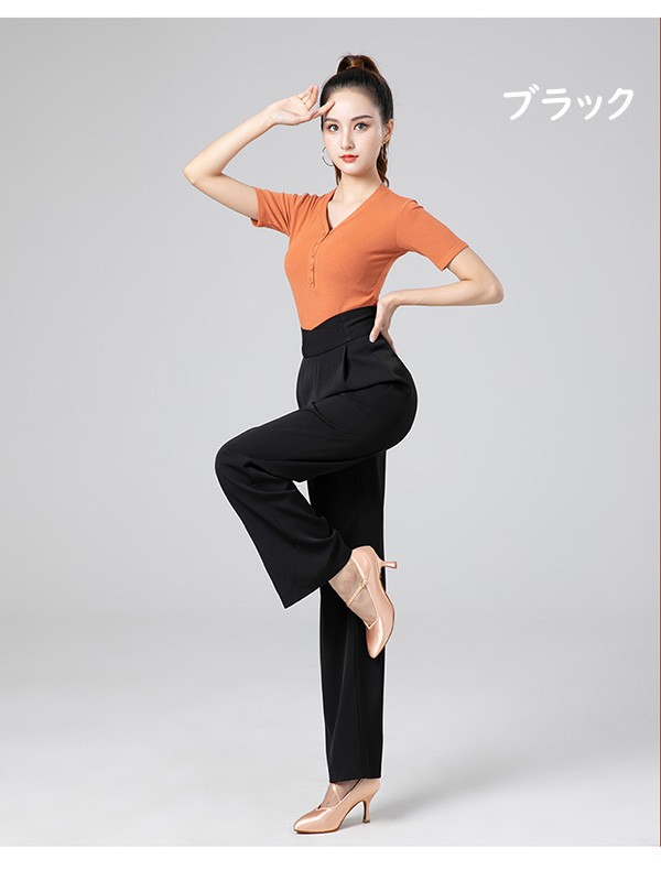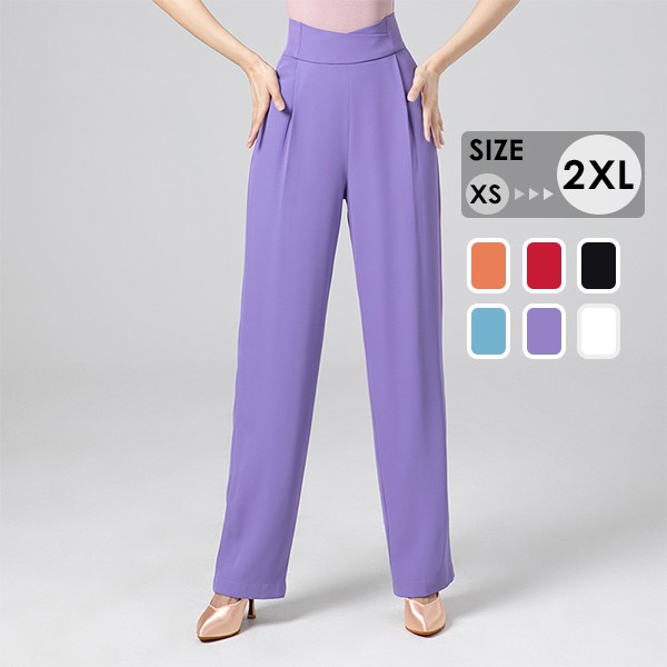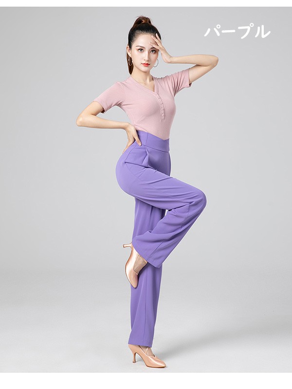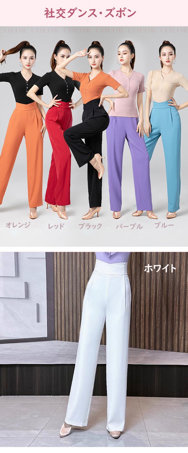 全6色 ダンスパンツ レディース ズボン ラテンダンスパンツ モダン 社交ダンス 練習着 薄手 ゆったり 長ズボン ボトムス 演出服 着痩せ 大きいサイズ ブラック オレンジ レッド パープル ブルー ホワイトXS S M L XL 2XL d1003m5