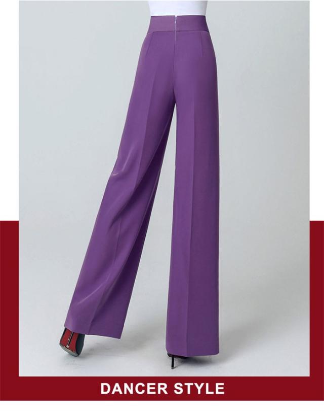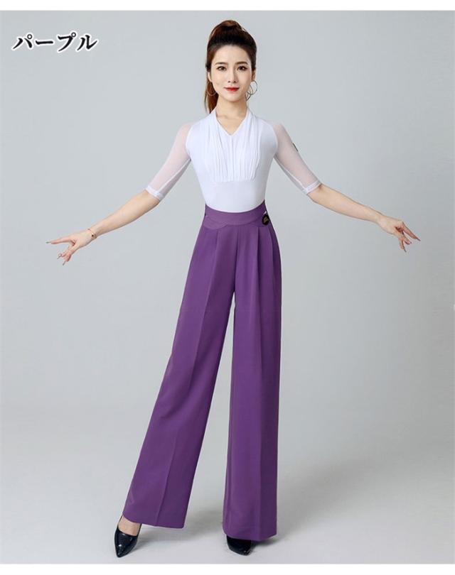 全4色 ダンスパンツ レディース ワイド パンツ ラテンダンスパンツ モダン 社交ダンス 練習着 パンツ ロング 薄手 ゆったり 長ズボン ダンス ボトムス 演出服 着痩せ 大きいサイズ有 ブラックパンツ 黒 パープル ワインレッド ネイビー