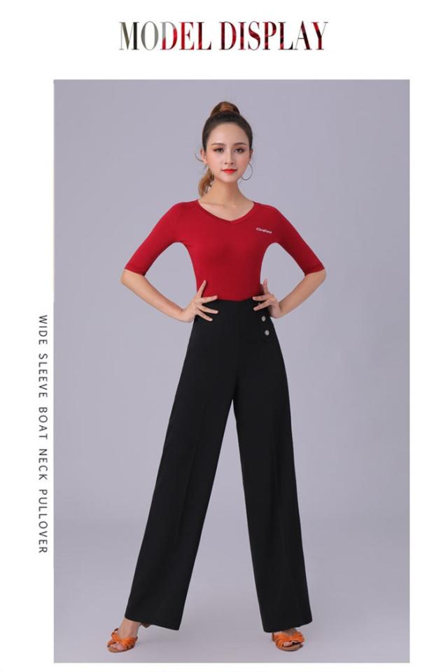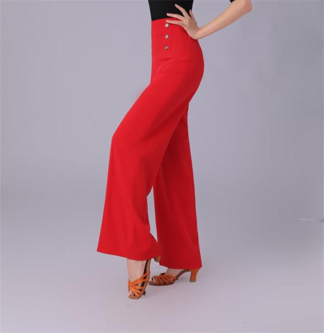 ダンスパンツ レディース ワイド パンツ ラテンダンスパンツ モダン 社交ダンス 練習着 パンツ ロング 薄手 ゆったり 長ズボン ダンス ボトムス 演出服 着痩せ 大きいサイズ有 赤 黒 白S-3XL d1083d7d7m5