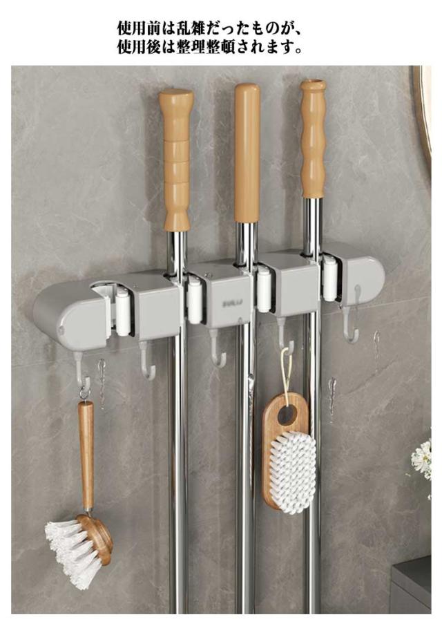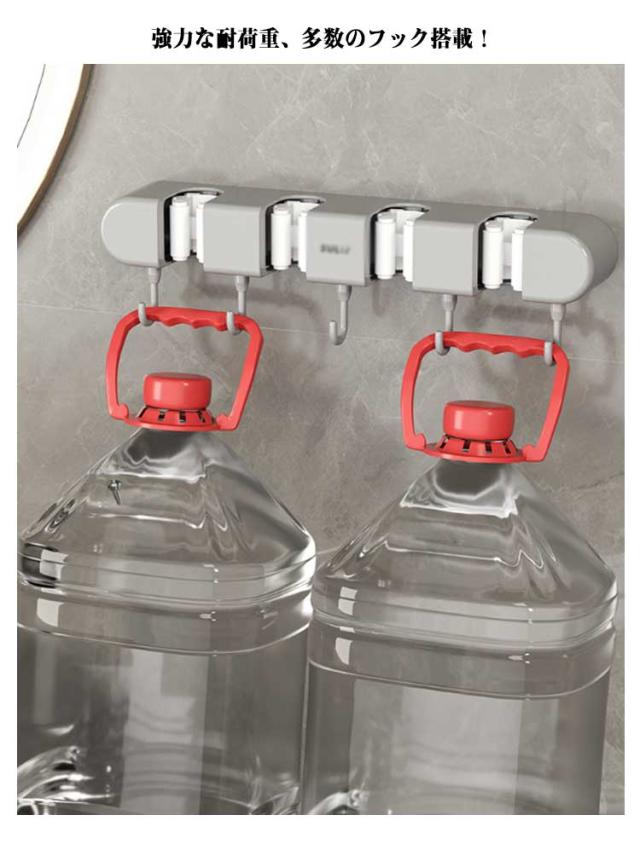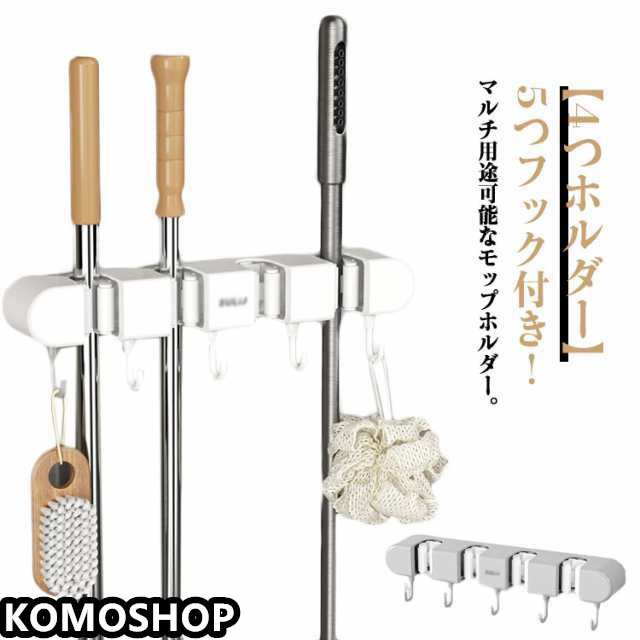 4つホルダー ホルダー モップフック モップ掛け モップホルダー モップ モップキャッチ ハンガー モップホルダー ほうきフック 5つフック付き モップクリップ 壁掛けホルダー モップ整理 キッチン ベランダ 収納 壁掛け バスホルダー ベランダホルダー キッチンホルダー