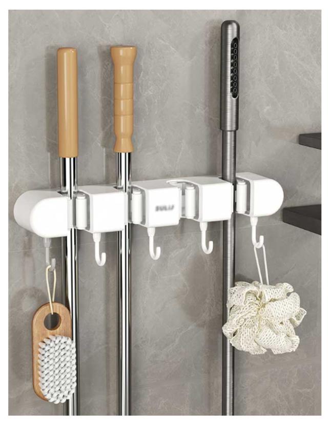| 【4つホルダー】5つフック付き!マルチ用途可能なモップホルダー。 4か所のホルダーは、軽く持ち上げるだけで取り出せます。 軽く押すだけでしっかりと挟みます・柔らかいシリコン製で、簡単に留められます。 多様な収納方法で、釘や穴を開け不要。 強力な耐荷重、多数のフック搭載! 使用前は乱雑だったものが、使用後は整理整頓されます。 バルコニー収納、キッチン収納、バスルーム収納、トイレ収納! 取付方法:付属ホルダーを壁面へ粘着貼り付け※掃除の時など本体の取り外しが可能! | |
