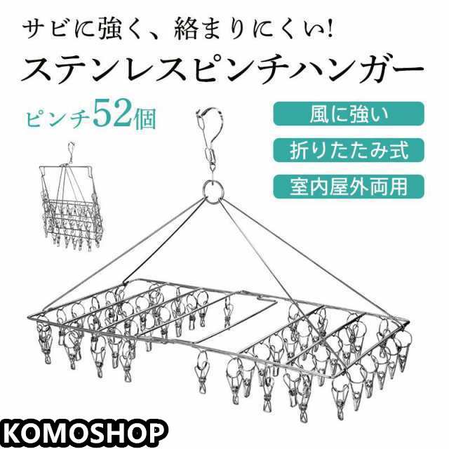 ステンレスピンチハンガー 52ピンチ 洗濯ハンガー オールステンレス サビにくい 落ちにくい 回転式 室内 室外 おしゃれ クリップハンガー タオルハンガー 洗濯物干しハンガー 角ハンガー 引っ張るだけ 洗濯ピンチ 洗濯 大きい 干し分け 多機能収納 折りたたみ式 室内外両用 物干し