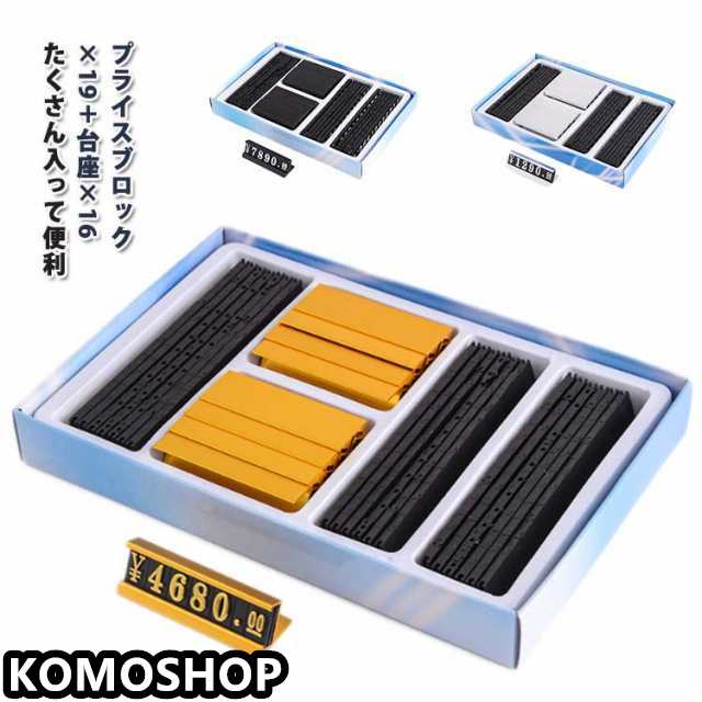 | プライスブロック×19+台座×16 たくさん入って便利 上品な光沢があり高級感のあるデザインがおしゃれで豪華なお店の雰囲気作りに活躍してくれます。 値段設定がとても簡単!プライスブロックを上下にスライドするだけで、ご希望の価格表示に組み替え可能。設定台に横方向にスライドさせて入れて、お店の商品の価格表示にとっても便利! コンパクトなのに一目で認識しやすい配色です。数字が見やすいからお客様にも優しいプライス表示です。 数字ブロックを最大6個セット可能。出し入れ、組み換えが自由自在。 便利なケース入りで紛失の心配がありません。 店舗、百貨店、フリマ、展示会、自宅サロン、商品カタログの撮影など様々なシーンに大活躍する値札プレートです。 | |