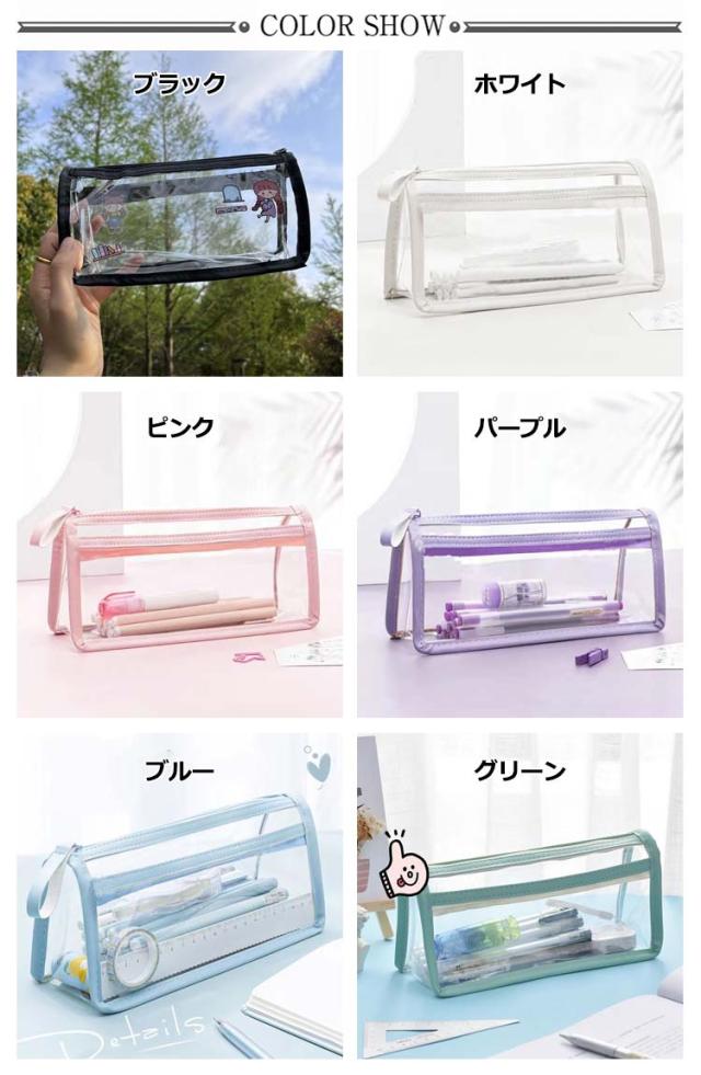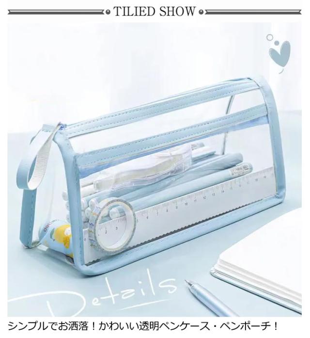 | 透明度の高いクリアーな素材で、中身がハッキリと際立って見える! シンプルでお洒落!かわいい透明ペンケース・ペンポーチ! 軽量すりむで持ち運び、持ち歩きにも便利です。 ペン入れだけでなく、メガネや小物などの小物入れ、文具ケースとして使えるので多機能です。 透ける筆箱なのでどこに何が入っているのか探しやすいです。 しんぷるでオシャレなデザイン構造のぺんけーすなので、男の子や女の子、小学生の子供も文房具の収納に使えます。 | |