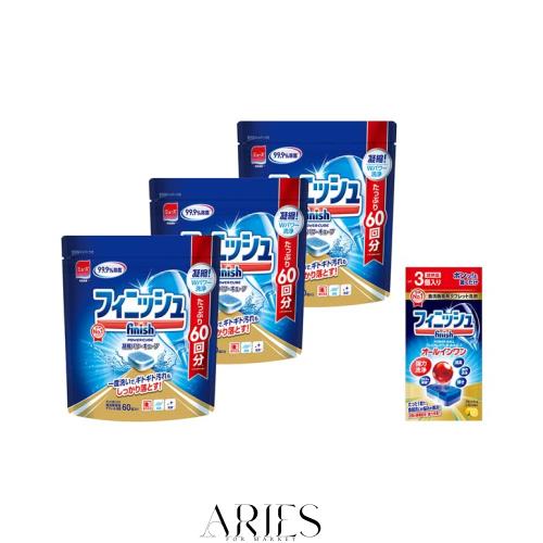 【まとめ買い】フィニッシュ 食洗機 洗剤 タブレット パワーキューブ 60個入 ×3袋+ 試供品付き (食洗機 洗剤 オールインワン プレミアム