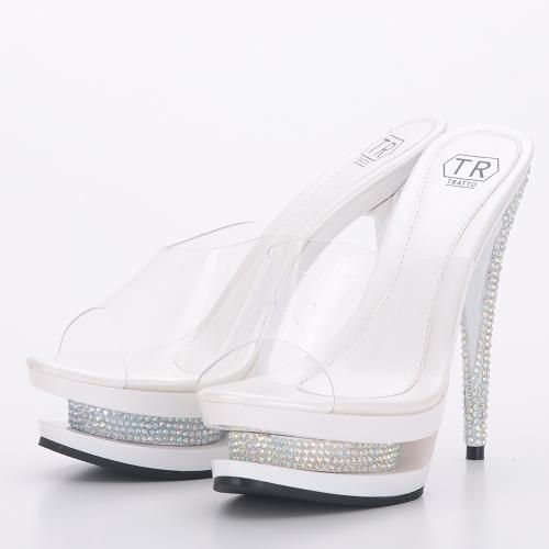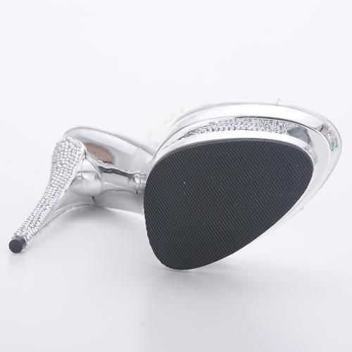 前面とヒール部分の、ビジューがキラキラと華やか。
