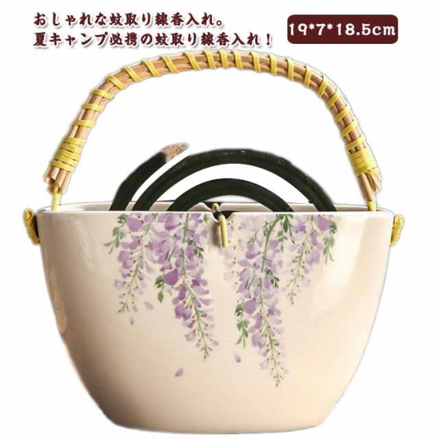 かやり インテリア 蚊取り線香ホルダー 蚊取り 陶器製 蚊遣り 蚊取り線香ホルダー おしゃれ 蚊取り線香入れ インテリア ハンドル付き 持ち運び 吊り下げ アウトドア 蚊取り線香ホルダー 室内
