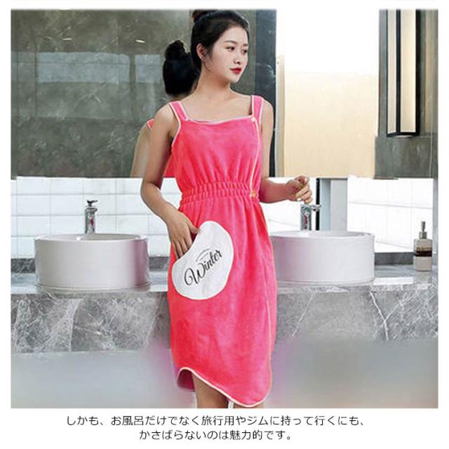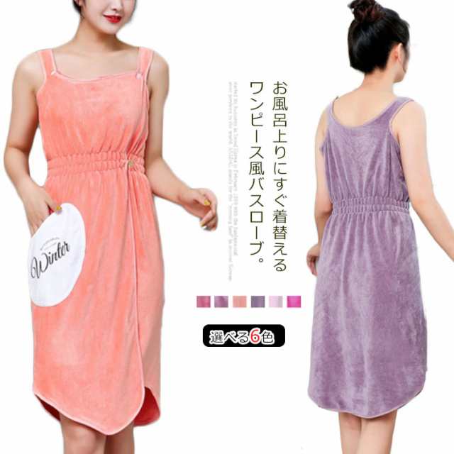 レディース バスローブ バスタオル プールジム 着れる マイクロファイバー 吸水 速乾 お風呂上がり もこもこ かわいい 新作 ふわふわ 全6色!ワンピース風 全6色!ワンピース風