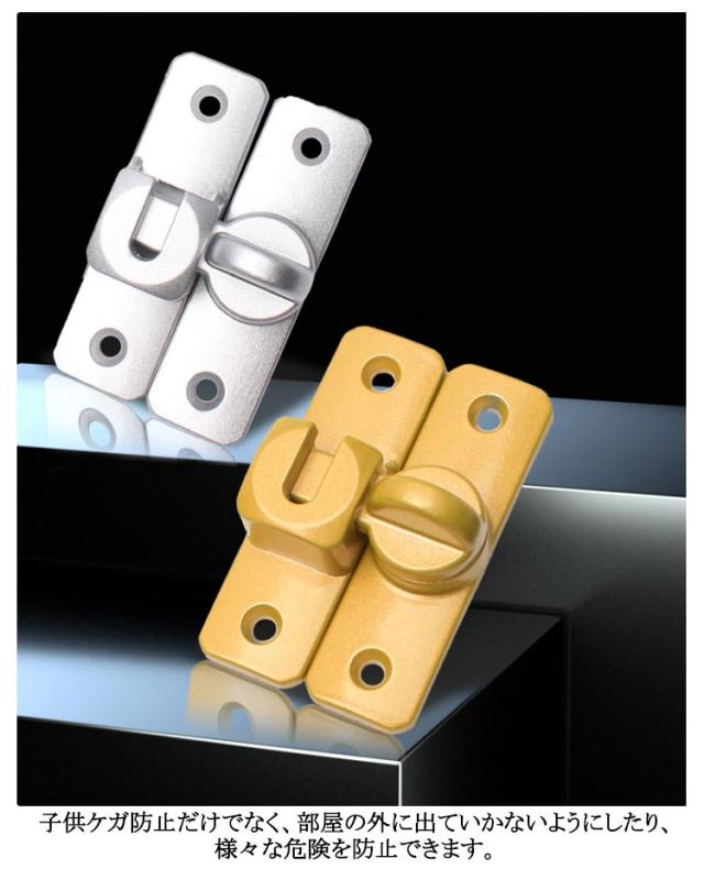 | ドアや窓のセキュリティーに役立つ後付けドアロック。 ねじでしっかり固定するタイプですので、丈夫で長持ちとなっております。 お手軽にドアに取り付ける事が可能で、お子さんのいたずらやペットの脱走からしっかり守ってくれるアイテムとなっております。 また、90度も180度も取り付けられるから、開き戸も引き戸も様々なドアに対応できます。 子供ケガ防止だけでなく、部屋の外に出ていかないようにしたり、様々な危険を防止できます。 簡単施錠でスライドドアの防犯対策ができます。猫の脱走防止用としてもお使いいただけます。 | |