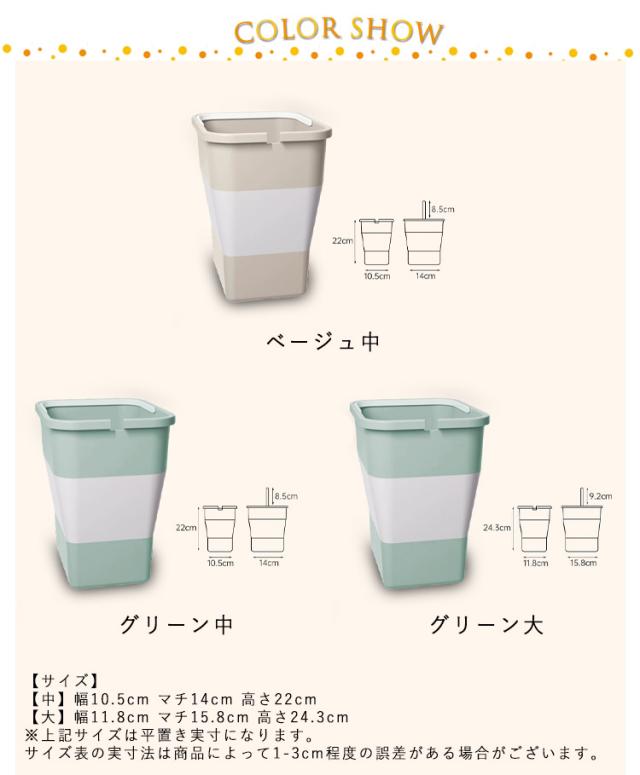 | ・折りたたみゴミ箱 ・折りたたみ式なので使用後はコンパクトに◎ ・丸洗いできるのでいつでも清潔にご使用いただけます。 | |
