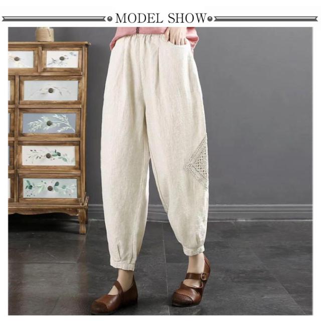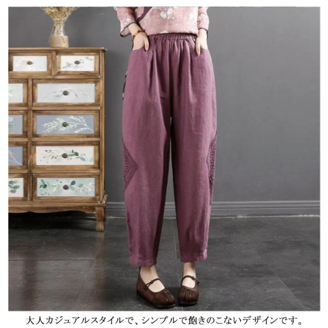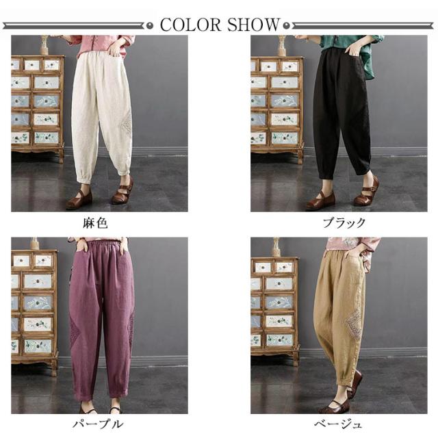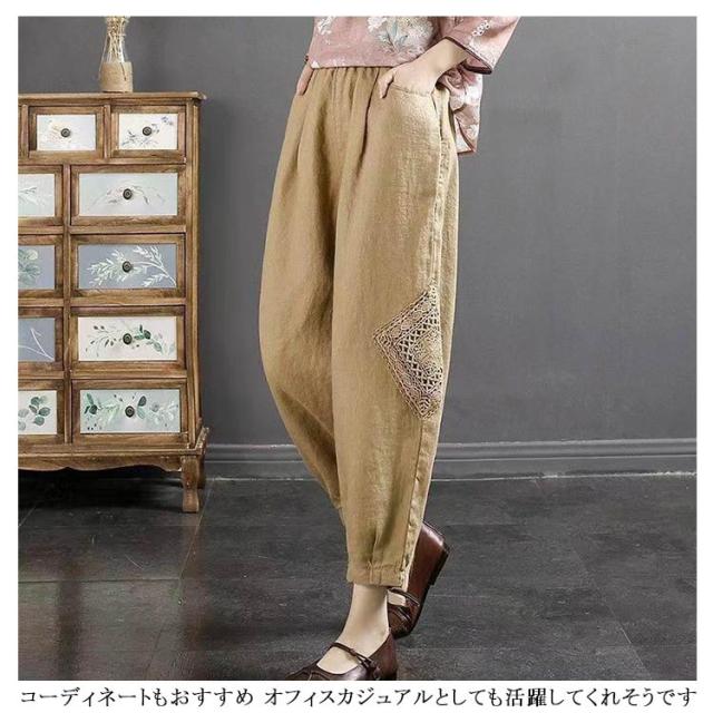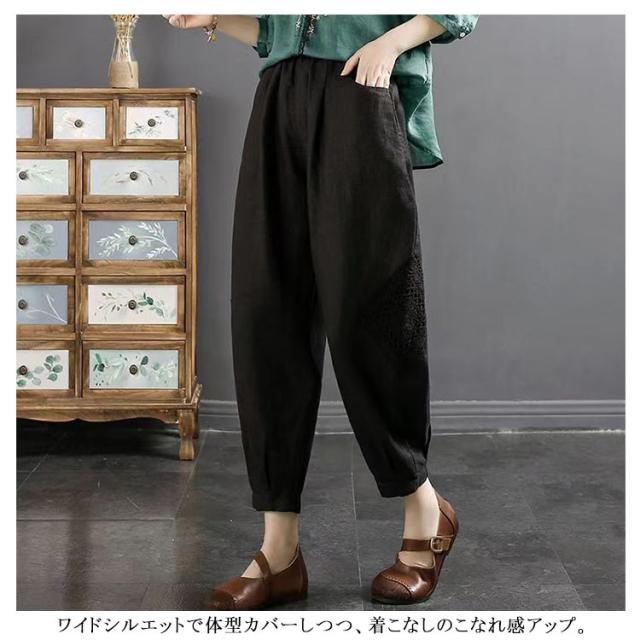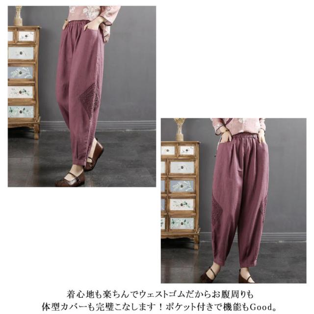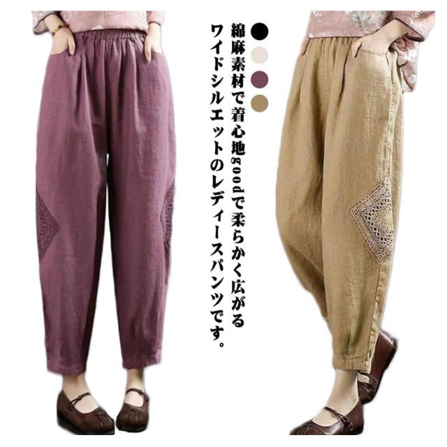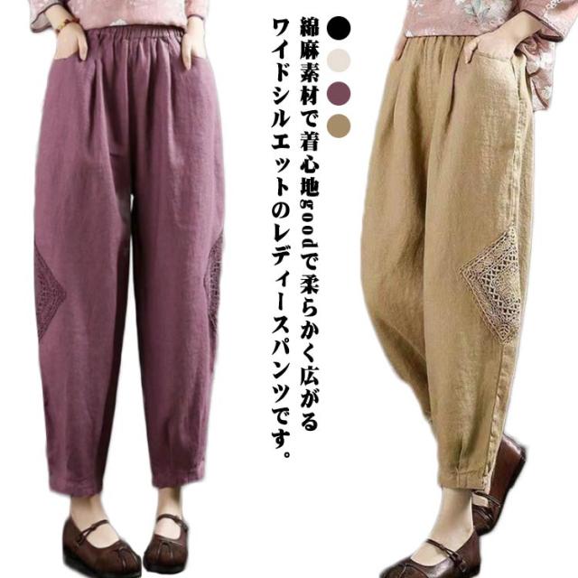 ロング丈 ズボン バルーンパンツ パンツ 秋 綿麻 コクーンパンツ ワイドパンツ ロングパンツ ワイドパンツ 春 ボトムス レディース 綿麻パンツ パンツ 夏 着痩せ ウエストゴム ゆったり 春夏 涼しい 通勤 30代 40代 50代 おしゃれ ナチュラル