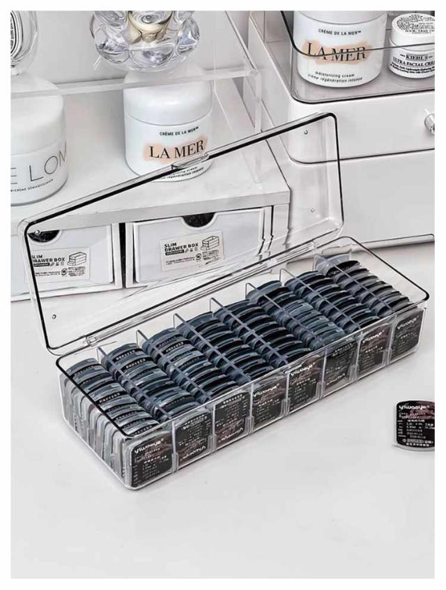 | 散らかりがちなコンタクトをスッキリ収納できるアクリル収納ケース。【最大72個収納可能】 蓋付でホコリや汚れもガード!透明で中身が見えるので残量も確認しやすい キッチン、バスルーム、デスク周りなど、さまざまな場所で活躍する多機能なケースでコンタクトはもちろん、メイク道具などの小物の整理にも役立ちます。 クリアなケースがインテリアとしても素敵なアクセントになります。シンプルでありながら、どこに置いてもおしゃれな雰囲気を演出できるため、韓国雑貨や北欧風のインテリアにぴったりです。 また、スッキリとしたデザインで、どんな場所にも馴染みやすく、デスクや洗面などの限られたスペースを効率的に活用することができます。 | |