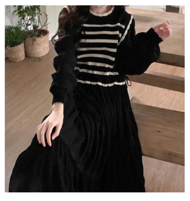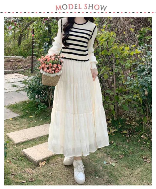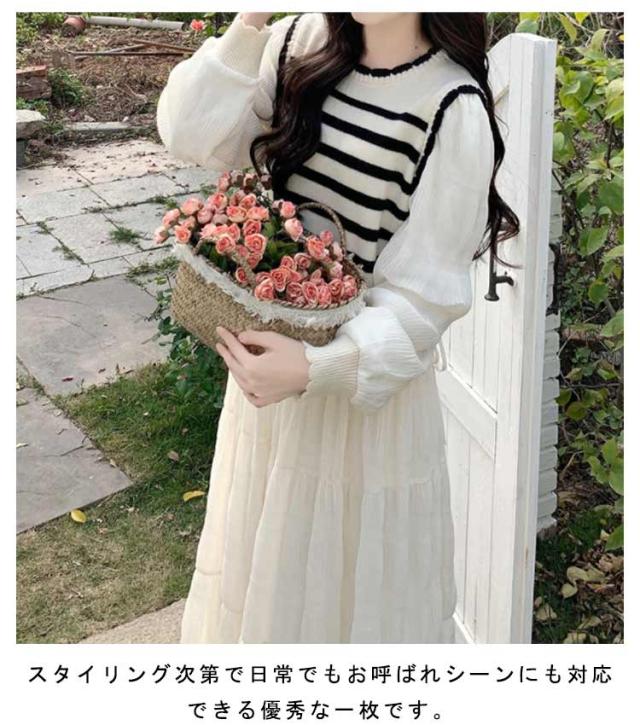 ワンピース 体型カバー 切り替え カジュアル ロングワンピース 大きいサイズ きれいめ フェイクレイヤード フェイクレイヤード ボーダー モード系 春 L XL 2XL 3XL