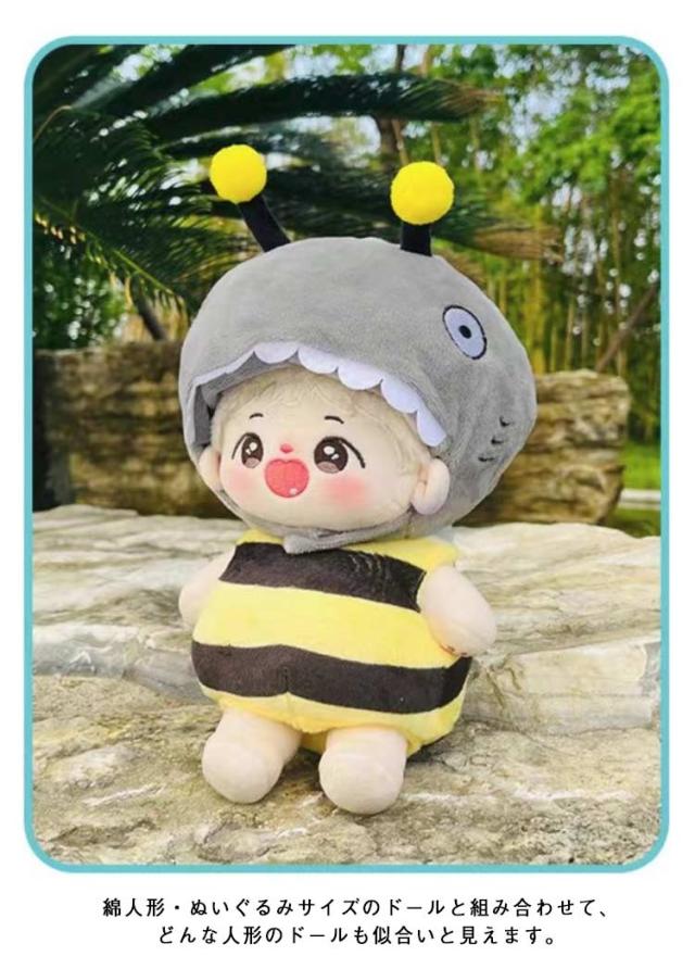| サメ×蜂のぬいぐるみ用着ぐるみが登場! 綿人形・ぬいぐるみサイズのドールと組み合わせて、どんな人形のドールも似合いと見えます。 かわいいぬいぐるみ服はクリスマスの日、誕生日、バレンタインデー、ハロウィーンなどのサプライズとして最適なギフトです! | |