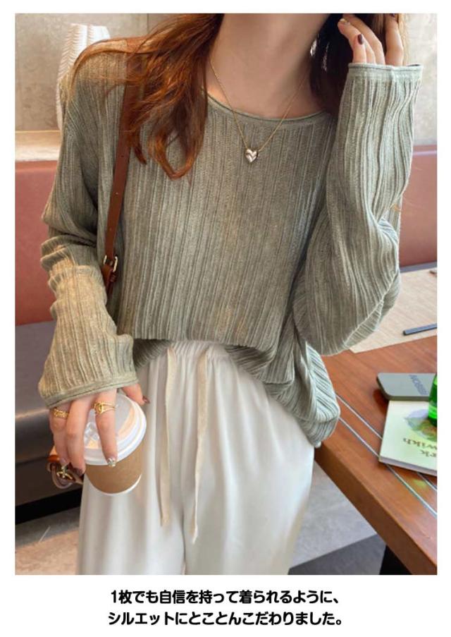| さらりとした肌触りに軽やかな着心地のきれいめニットトップス。 すっきりとした見た目なのに体型を拾わないこだわりのシルエットが魅力です。 春夏は1枚で涼しく、秋冬は重ね着しやすいデザインでオールシーズンご着用いただけます。 1枚でも自信を持って着られるように、シルエットにとことんこだわりました。 程良くフィットしながら、体型を拾い過ぎずすっきりとしたシルエットのトップスです。 | |