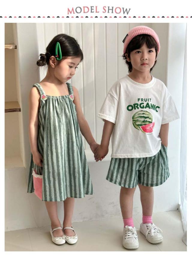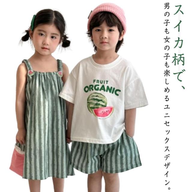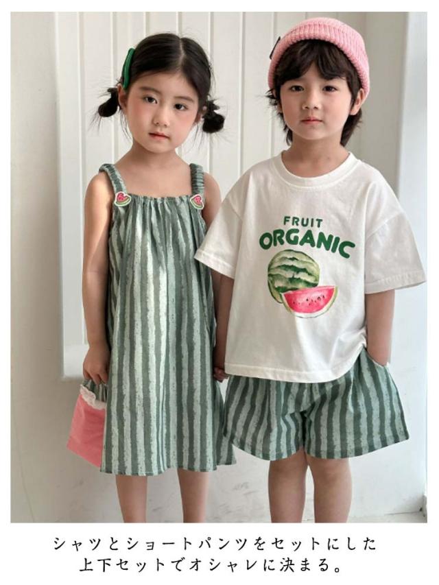 男の子 ワンピース ショートパンツ セットアップ ジュニア お揃い スイカ ベビー服 tシャツ 半袖 可愛い 夏春 子供服 兄妹 上下セット スイカ 女の子 おしゃれ 夏 春 トップス 姉弟 ボトムス 赤ちゃん 半ズボン 入学 入園 誕生日