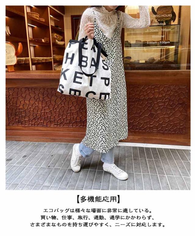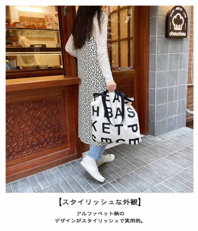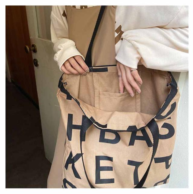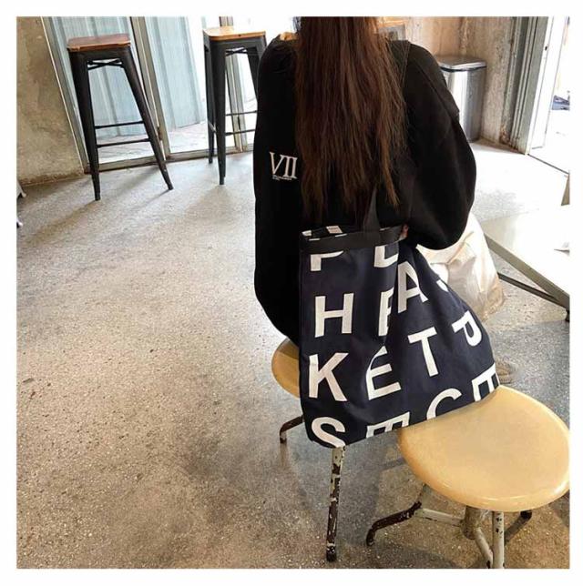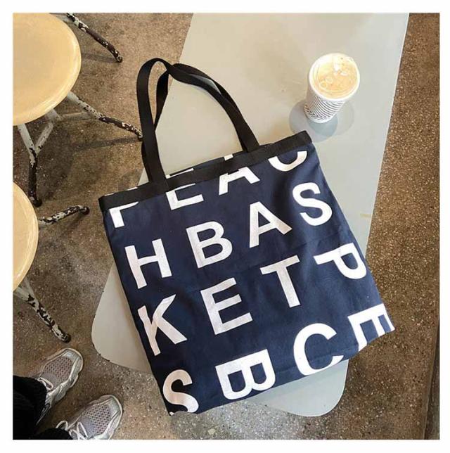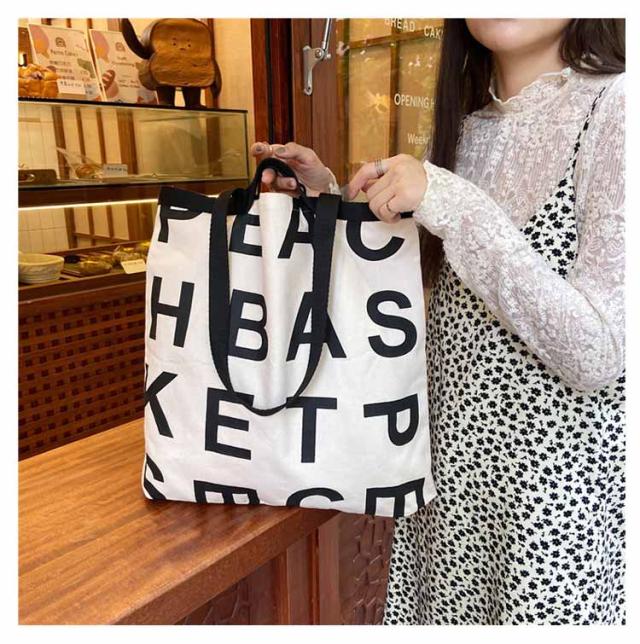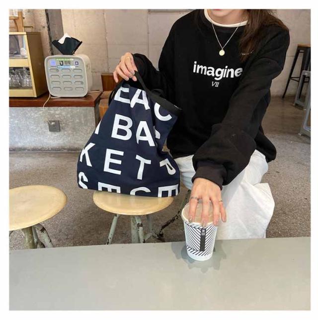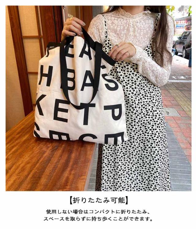 韓国ファッション バッグ アルファベット柄 キャンバス エコバッグ 2WAY ハンドバッグ レディース トートバッグ 大容量 おしゃれ お出かけ トートバッグ お洒落 買い物 プチプラ 便利 たためる メンズ 男女兼用 軽量 コンパクト 折り畳みバッグ