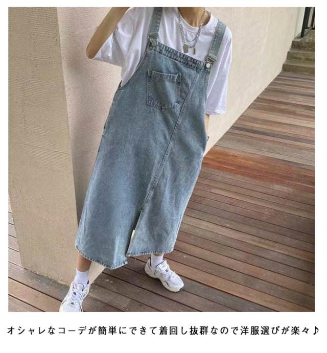 | ロングで大人なジャンスカ。 スリット入りで歩きやすい☆ トップス次第で雰囲気が変わってオールシーズン使える。 スカートタイプのオーバーオールでカジュアルなだけでなく、 ガーリーな雰囲気も出せる優れもの! オシャレなコーデが簡単にできて着回し抜群なので洋服選びが楽々♪ ワンマイルコーデにも◎ 程よくゆるっとしたサイズ感で大人のこなれ感を演出してくれる。 楽な着心地で体型カバーも叶う! | |
