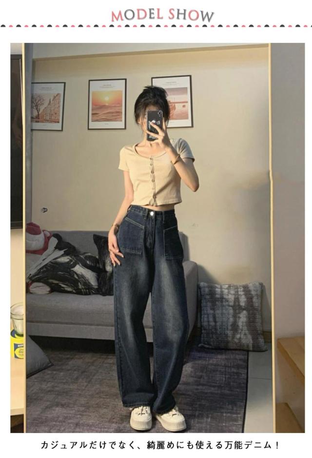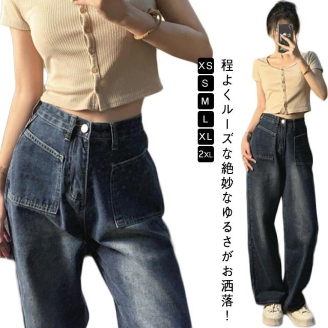 長ズボン ジーパン 送料無料 ワイドパンツ レディース インディゴ ワイド デニムパンツ ワイドデニム 送料無料 Gパン パンツ ロング ウォッシュ加工 綿 デニム ルーズ ラフ 大きいサイズ 春 夏 秋