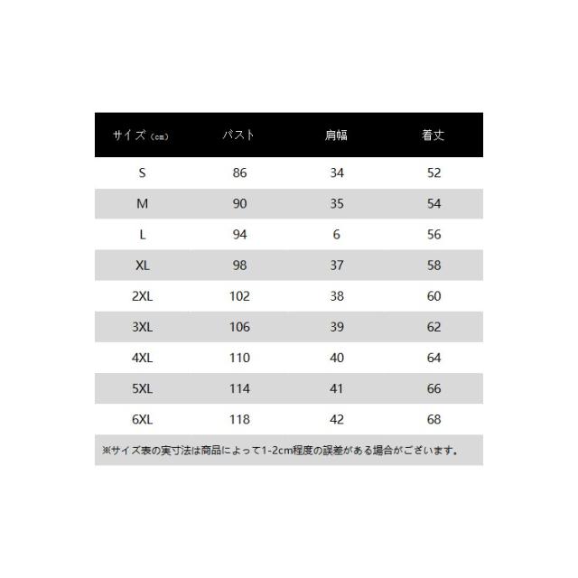 | サイズ | S M L XL 2XL 3XL 4XL 5XL 6XL |