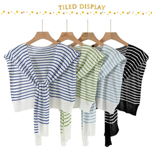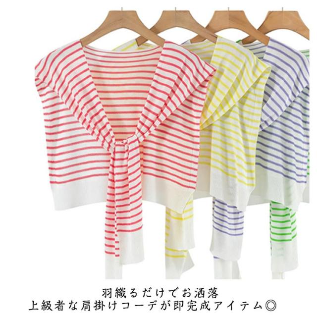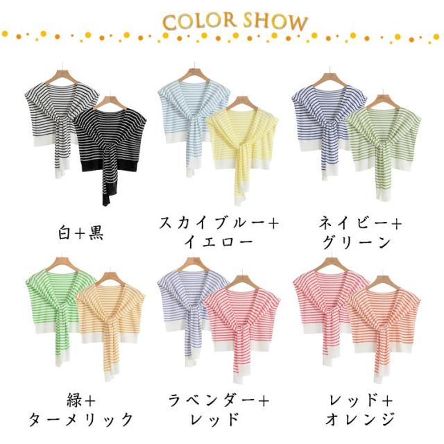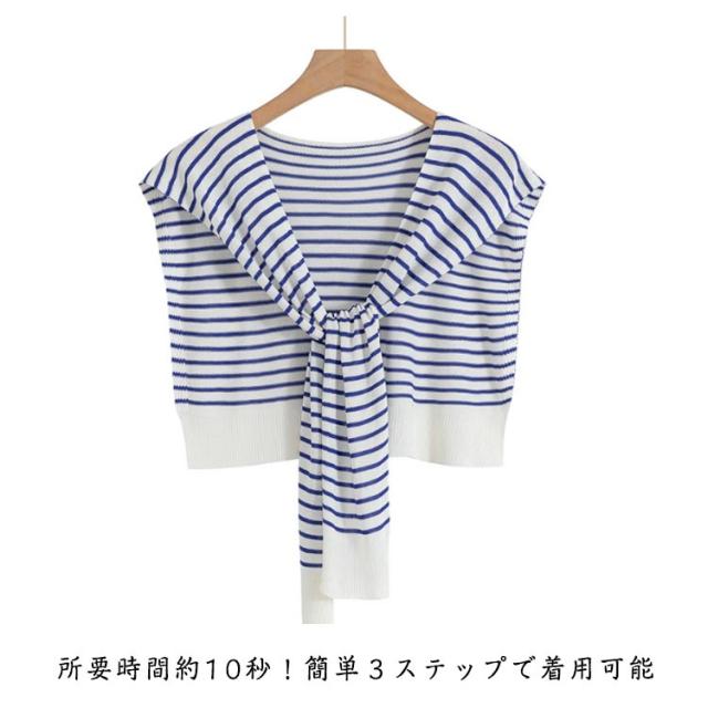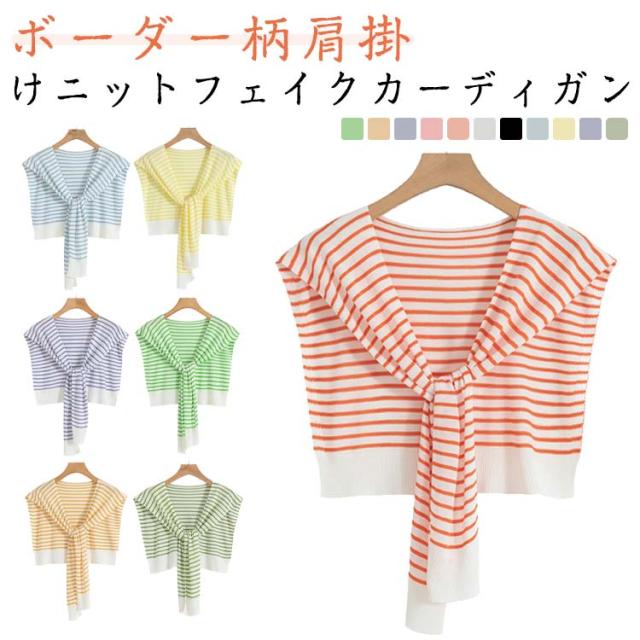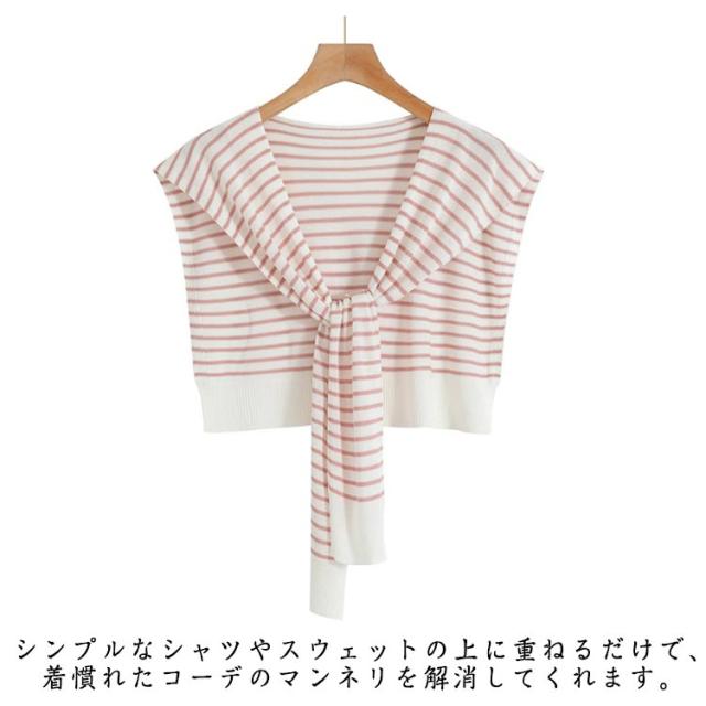 つけ襟 ニット レディース トップス ボーダー 小物 ストール 肩掛けニットフェイクカーディガン 付け襟 カラーニット カーディガン風 つけ襟 カジュアル