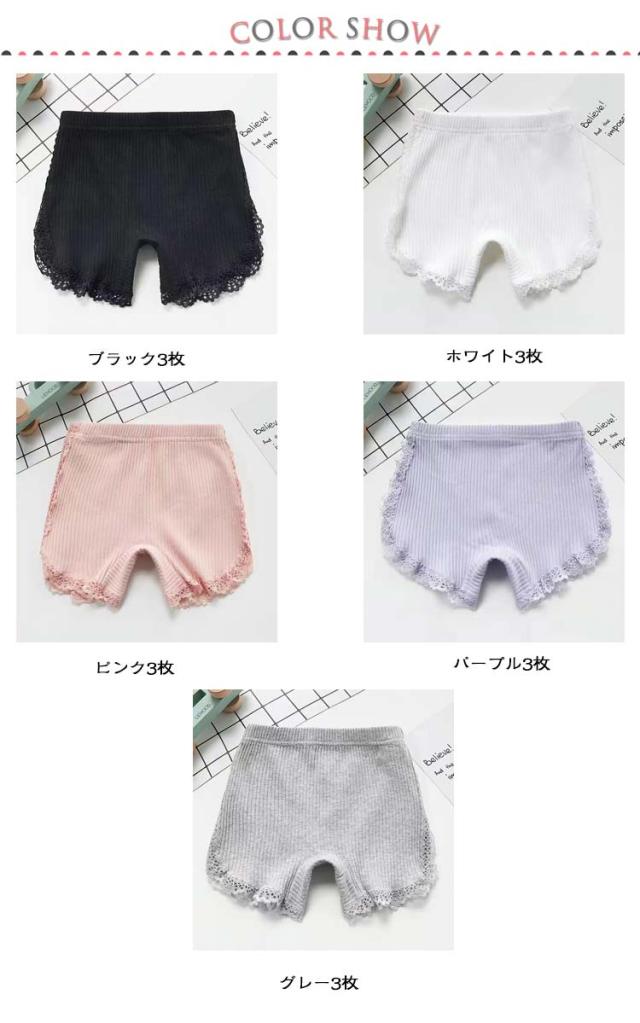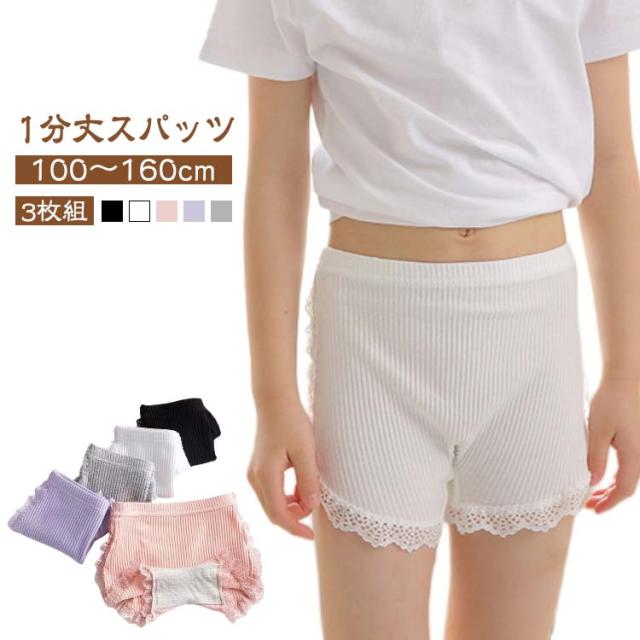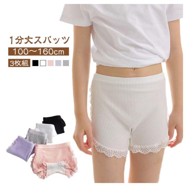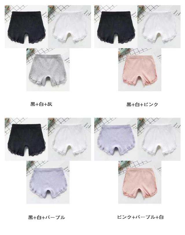 インナーパンツ 1分丈 綿 幼稚園 スパッツ オーバーパンツ 子供 キッズ ペチパンツ 3枚組 スパッツ 女の子 無地 ベビー服 レギンス パンツ アンダーパンツ 3枚組 レース 小学生 ペチコート ショートレギンス 伸縮 通気性 夏