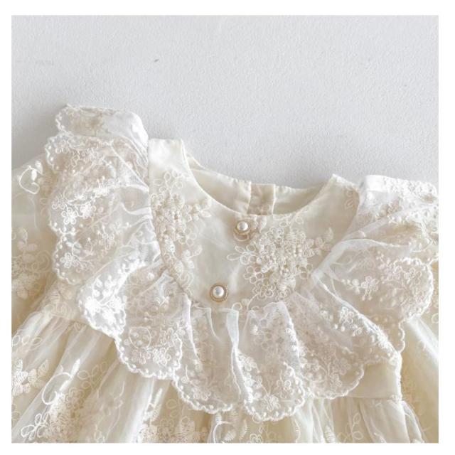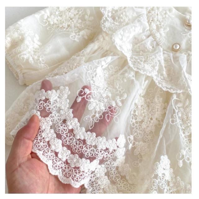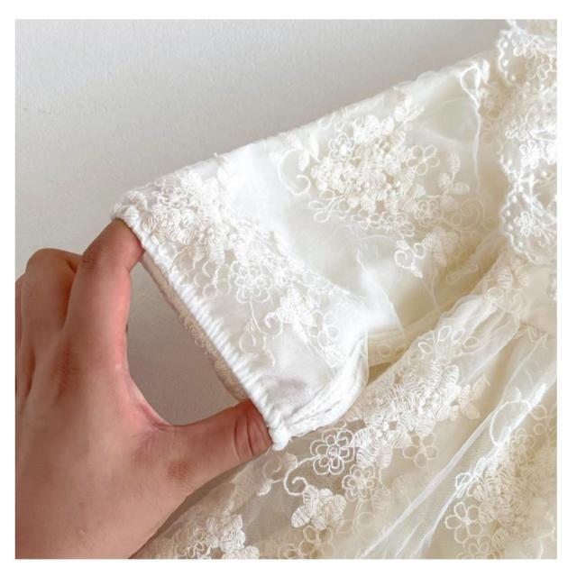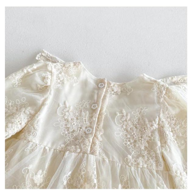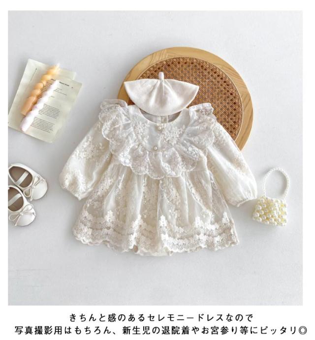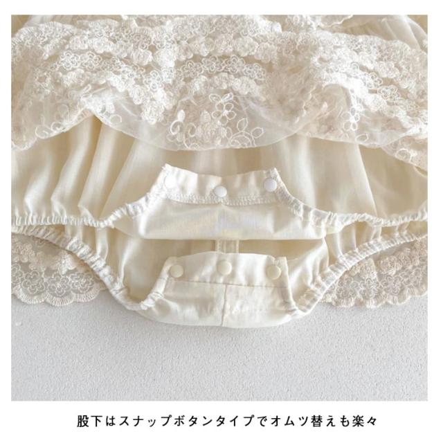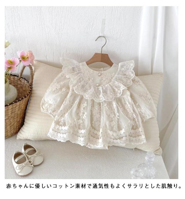 退院着 ロンパース ベビードレス カバーオール お宮参り セレモニードレス ベビー セレモニードレス 赤ちゃん ドレス ハーフ おしゃれ 新生児 フォーマル 長袖 出産祝い 綿 コットン レース フリル 可愛い 誕生日 ベビー服 バースデー 100日 結婚式 ベージュ