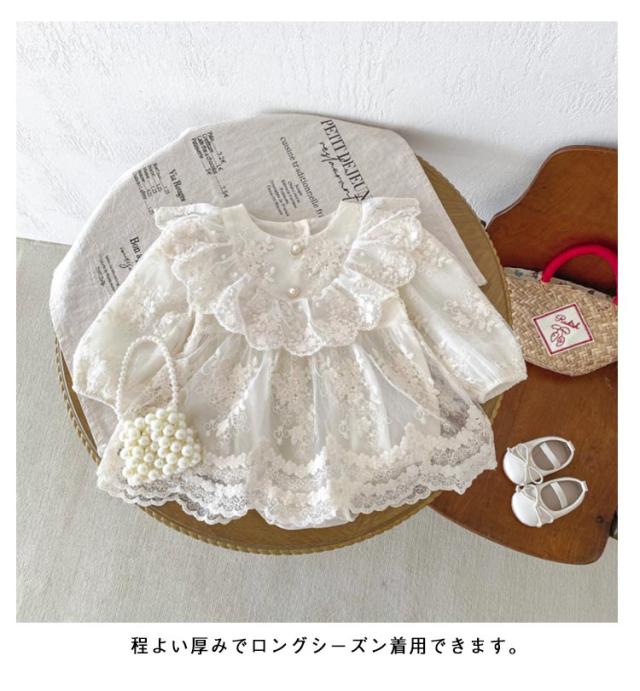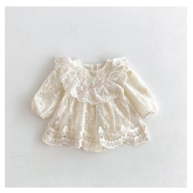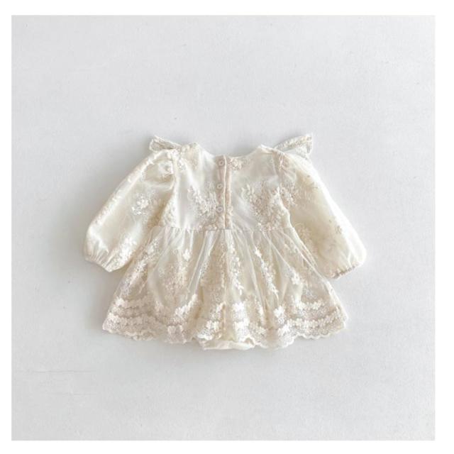 | レースとフリルデザインが可愛いセレモニードレス きちんと感のあるセレモニードレスなので写真撮影用はもちろん、新生児の退院着やお宮参り等にピッタリ◎ 股下はスナップボタンタイプでオムツ替えも楽々 赤ちゃんに優しいコットン素材で通気性もよくサラリとした肌触り。 程よい厚みでロングシーズン着用できます。 | |