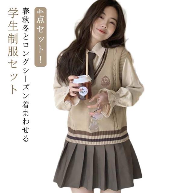 中学生 4点セット 上下セット JK制服 プリーツスカート おしゃれ 制服 ライン入り ニットベスト 女の子 4点セット コスプレ衣装 学生 ネクタイ スクール 女子高校生 高校生 長袖 学生服 韓国 白シャツ コスチューム 仮装 可愛い