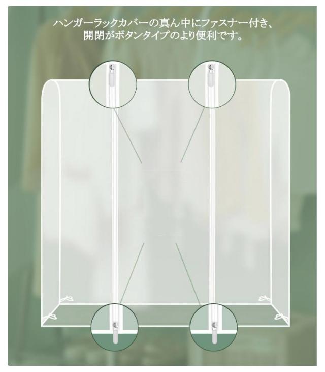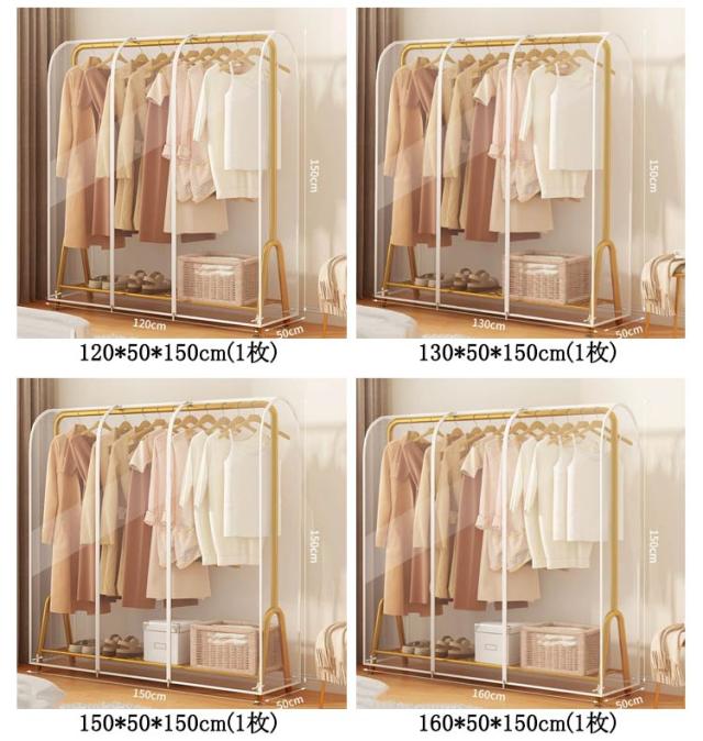 | クローゼット内や、ハンガーラックに掛けた洋服をホコリからガード!【透明?半透明2タイプ】【幅60cm−200cm選べる】【2枚セット】 幅60−200cm*高さ150cm、PEVAで作られて、お大切な服をホコリ、カビ、湿気、虫や汚れからしっかり守って、服を型崩れないし、衣類を大事に保管できます。 ハンガーラックカバーの真ん中にファスナー付き、開閉がボタンタイプのより便利です。 日常服や制服、スーツなどをパイプハンガーに掛け、そしてカバーを覆うと何日が経っても汚れないし、服を取るや掛けるのも邪魔なしで行えます。 透明?半透明なので中身が見える。 使わないときは折りたたんでコンパクトに収納可能。 | |