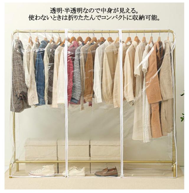 まとめて収納 ハンガーラックカバー 衣類収納カバー 透明 パイプハンガーカバー ハンガーラックカバー 衣替え 衣類カバー 半透明 おしゃれ 衣類収納 洋服カバー ドレスカバー コートハンガー ワードローブ ハンガーラック コートカバー 防虫 防カビ ほこり防止