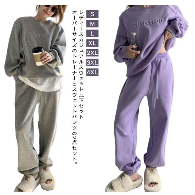 スウェット上下セット レディース 運動着 スウェットパンツ スエット ルームウェア 長袖 トレーナー スウェット上下セット セットアップ ロングパンツ 部屋着 大きいサイズ オーバーサイズ 無地 2点セット ゆったり カジュアル 春 秋 冬 通勤 通学 薄手 裏起毛