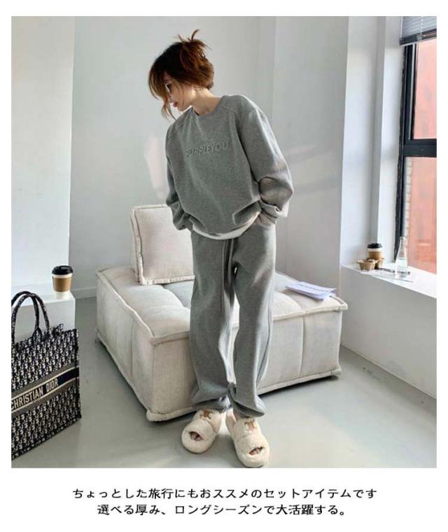 | レディースカジュアルスウェット上下セット オーバーサイズのトレーナーとスウェットパンツの2点セット。 パンツはウエストゴムで履きやすく、おうち時間を軽快にしてくれるイージーパンツ。 スポーツはもちろん、リラックスしたオウチ時間を過ごしたり、ちょっとそこまでのお散歩にも! ちょっとした旅行にもおススメのセットアイテムです。 選べる厚み、ロングシーズンで大活躍する。 | |