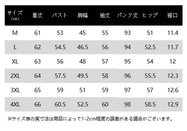 | サイズ | S M L XL 2XL 3XL 4XL |