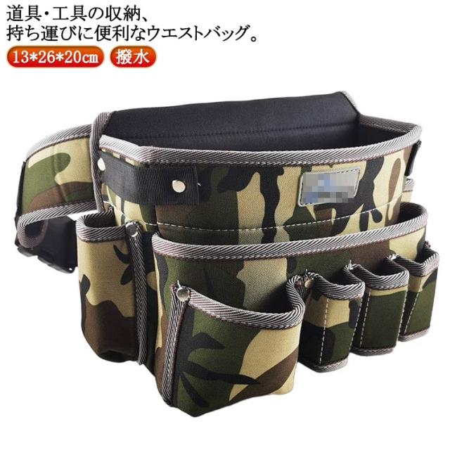 大工 大容量 修理 道具 ウエストバッグ ウエストポーチ ウエストポーチ 収納バッグ 大容量 多ポケット マチ付き 仕事用 工具バッグ 工具収納 工具 腰袋 撥水 工具差し入れ 建設 かばん 工事 建築 鉄工 電工 内装 家事 掃除 迷彩柄 おしゃれ 工具袋