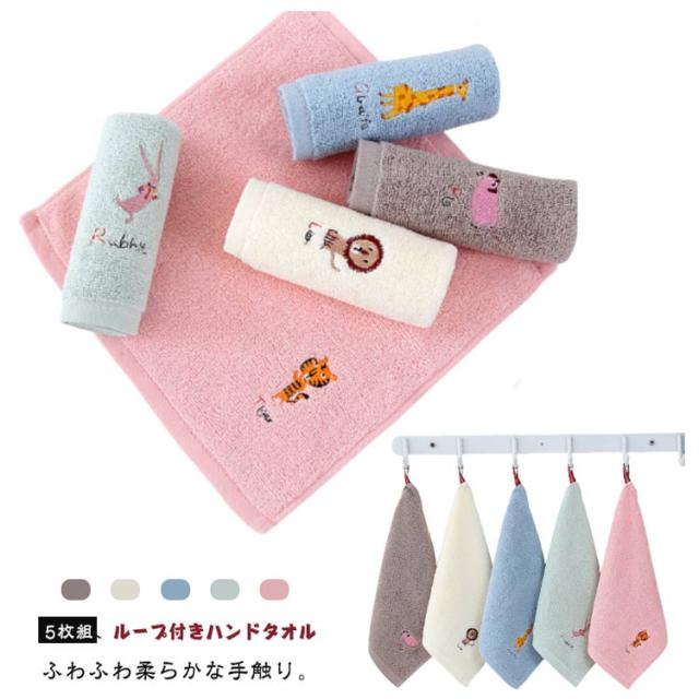 5枚セット 紐付きタオル 保育園 女の子 吸水 タオル 手拭き 男の子 子ども タオル タオル ループ付きハンドタオル キッズ 通園 5枚組 ループタオル ハンドタオル かわいい ハンカチ 幼稚園 小学校 ベビー 登校 通学 25*25cm 入学 入園グッズ ギフト プレゼント