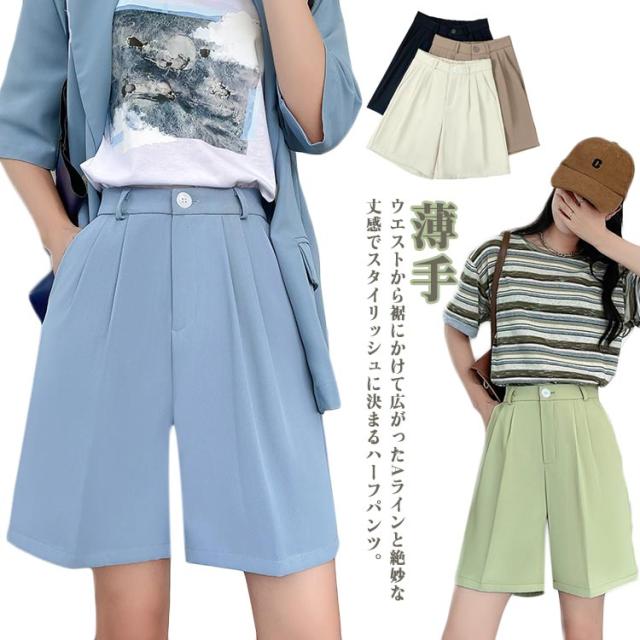 ゆったり レディース 送料無料 ワイドパンツ 五分丈 短パン 大人 ショートパンツ 無地 ボトムス テーパード ショート丈 ハーフパンツ 薄手 涼しい 大きいサイズ キュロット 膝丈 スラックス オフィス ママ 通勤通学 送料無料 夏物