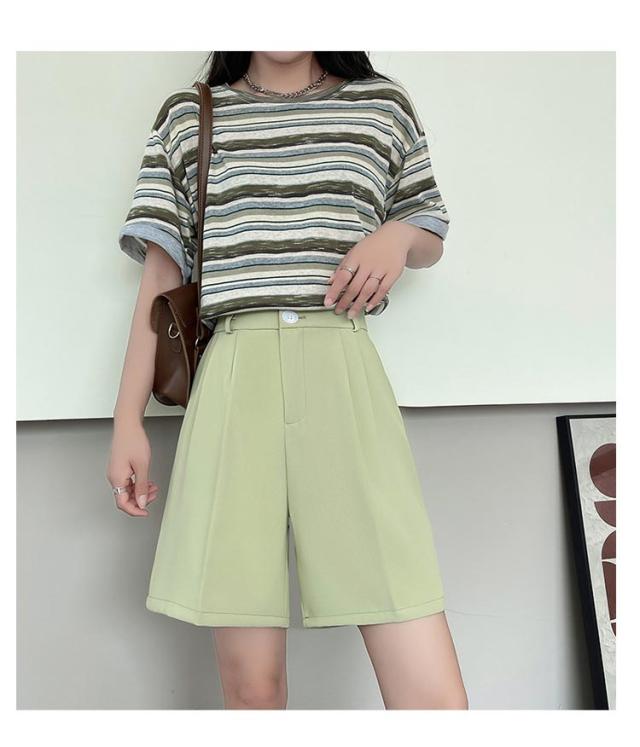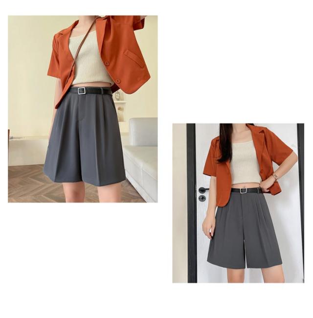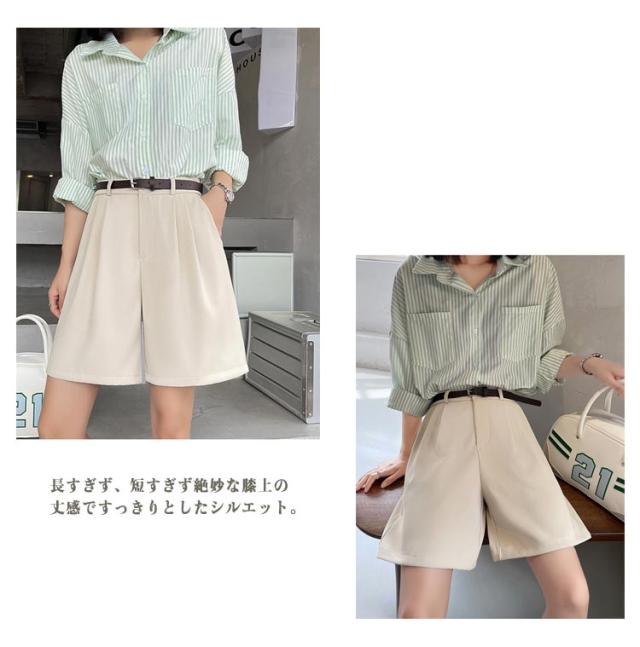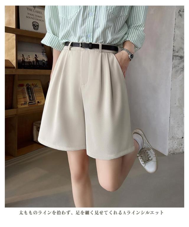 | シンプルデザインで大人も穿けるトレンドライクなハーフパンツ。 膝上くらいの丈感で、大人の女性も綺麗に着こなしていただけます。 ワイドなシルエットで太ももの華奢見せが叶う。 フロントにタックが入っているからもも周りにゆとりがあり、窮屈感のない着用感。 さらっとした薄手の生地で春夏に大活躍すること間違いなし! ニットやカットソー、ブラウスやシャツなど、どんなトップスとも相性抜群。 | |