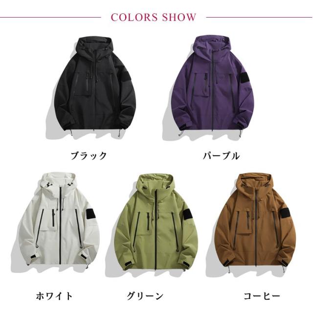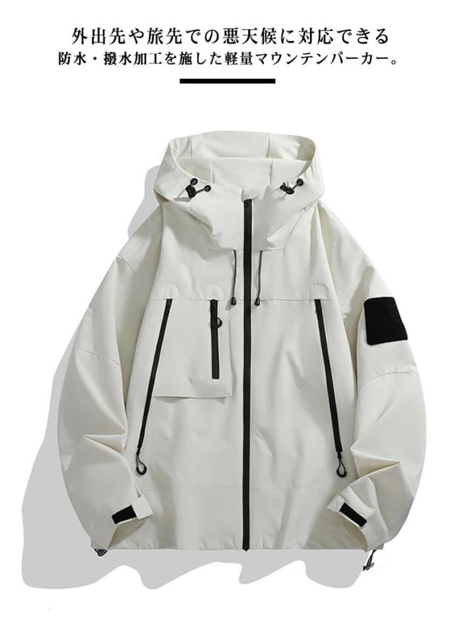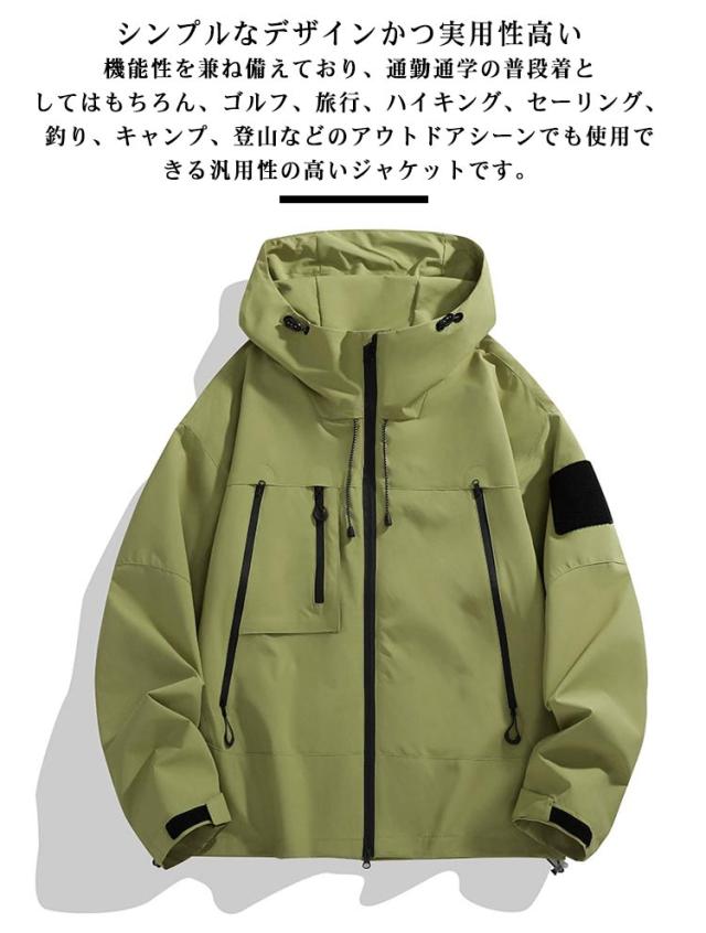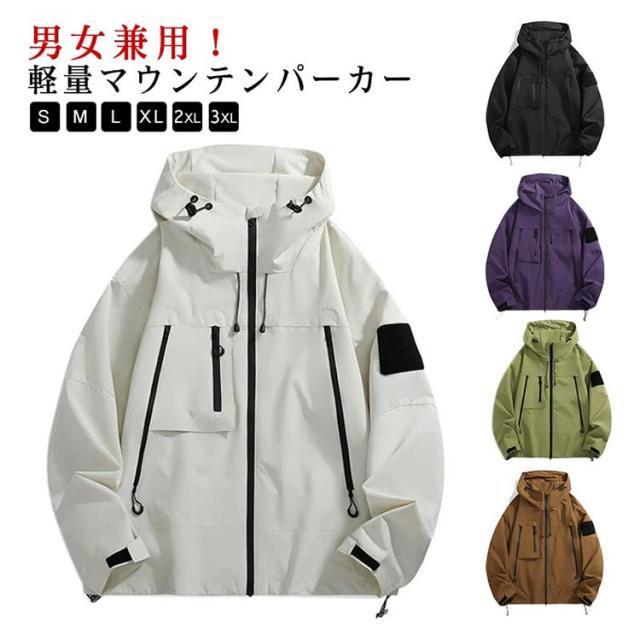 | S-3XL!男女兼用!外出先や旅先での悪天候に対応できる防水・撥水加工を施した軽量マウンテンパーカー。 防水・撥水加工を施しており、突然の雨でも安心。 軽量かつ薄手の素材感はさっと羽織るライトアウターとして最適です。 シンプルなデザインかつ実用性高い機能性を兼ね備えており、通勤通学の普段着としてはもちろん、ゴルフ、旅行、ハイキング、セーリング、釣り、キャンプ、登山などのアウトドアシーンでも使用できる汎用性の高いジャケットです。 | |