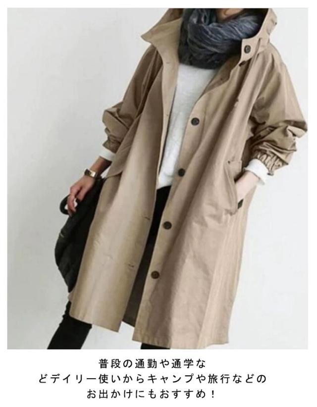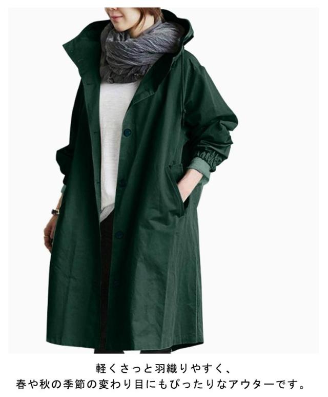 フード付き スプリングコート アウター トレンチコート ライトアウター コート トレンチコート 春服 秋 レディース ミドル丈 ロングコート ロング丈 春 ブルゾン アウター ジャケット ゆったり 大きいサイズ マウンテンパーカー 送料無料