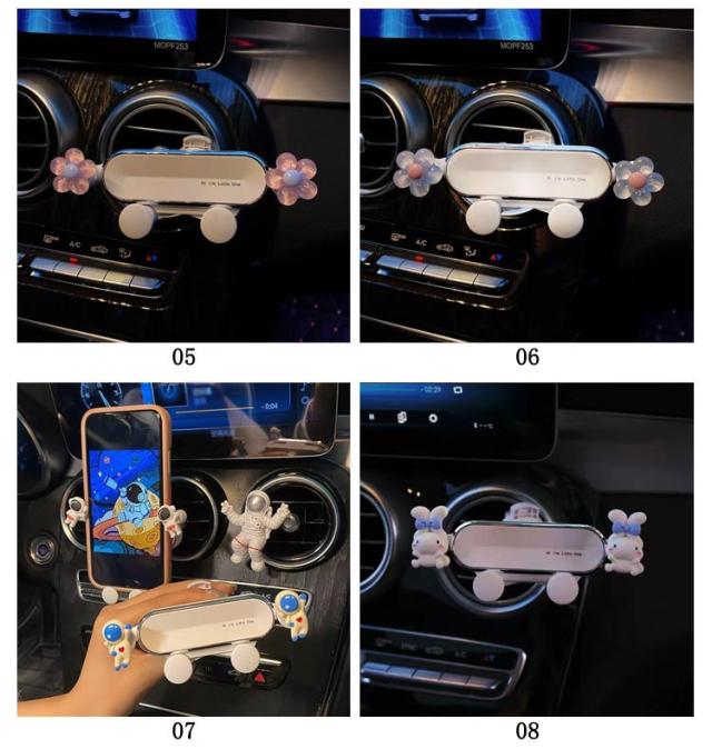 | 19色! 携帯ホルダーは360度で自由に回転することが可能。 エアコン吹き出し口に取り付けることが可能な可愛い車載ホルダー。 アニマルや花のデザインが車内の雰囲気をより可愛らしくオシャレにしてくれる。 取り付けや取り外しが簡単に出来るので、置くだけで装着可能。 | |