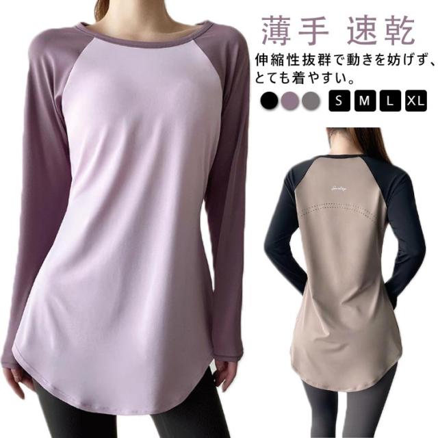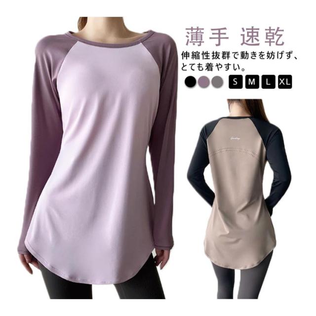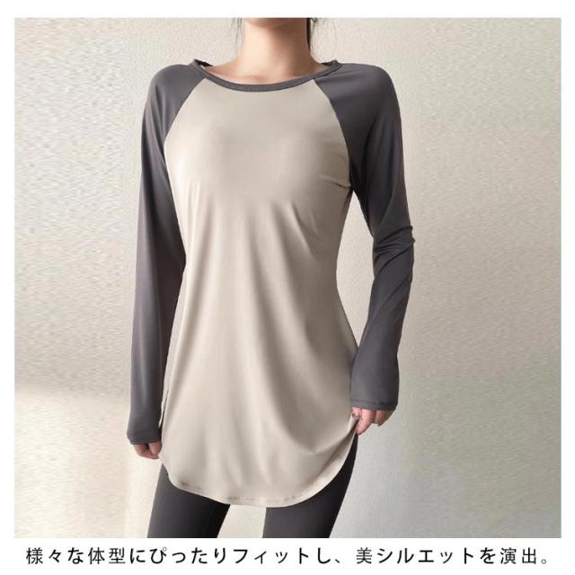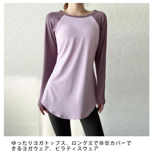 体型カバー ロング スポーツウェア トップス ホットヨガ ランニング Tシャツ ロング 半袖 ヨガ レディース 長袖 tシャツ ヨガウェア yoga フィットネスウェア ストレッチ ピラティス 薄手 速乾 運動 スポーツウェア ジムウェア ダンス おしゃれ かわいい