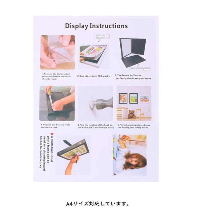 | 【アートフレーム】【A4サイズ】【子供の絵を飾る・保存用】 子供の絵を美しく飾るためのアートフレームです。 保管用途に最適!似顔絵も保存可能! 多機能額縁!画用紙・フォトフレームにもなる。 A4サイズ対応しています。 | |